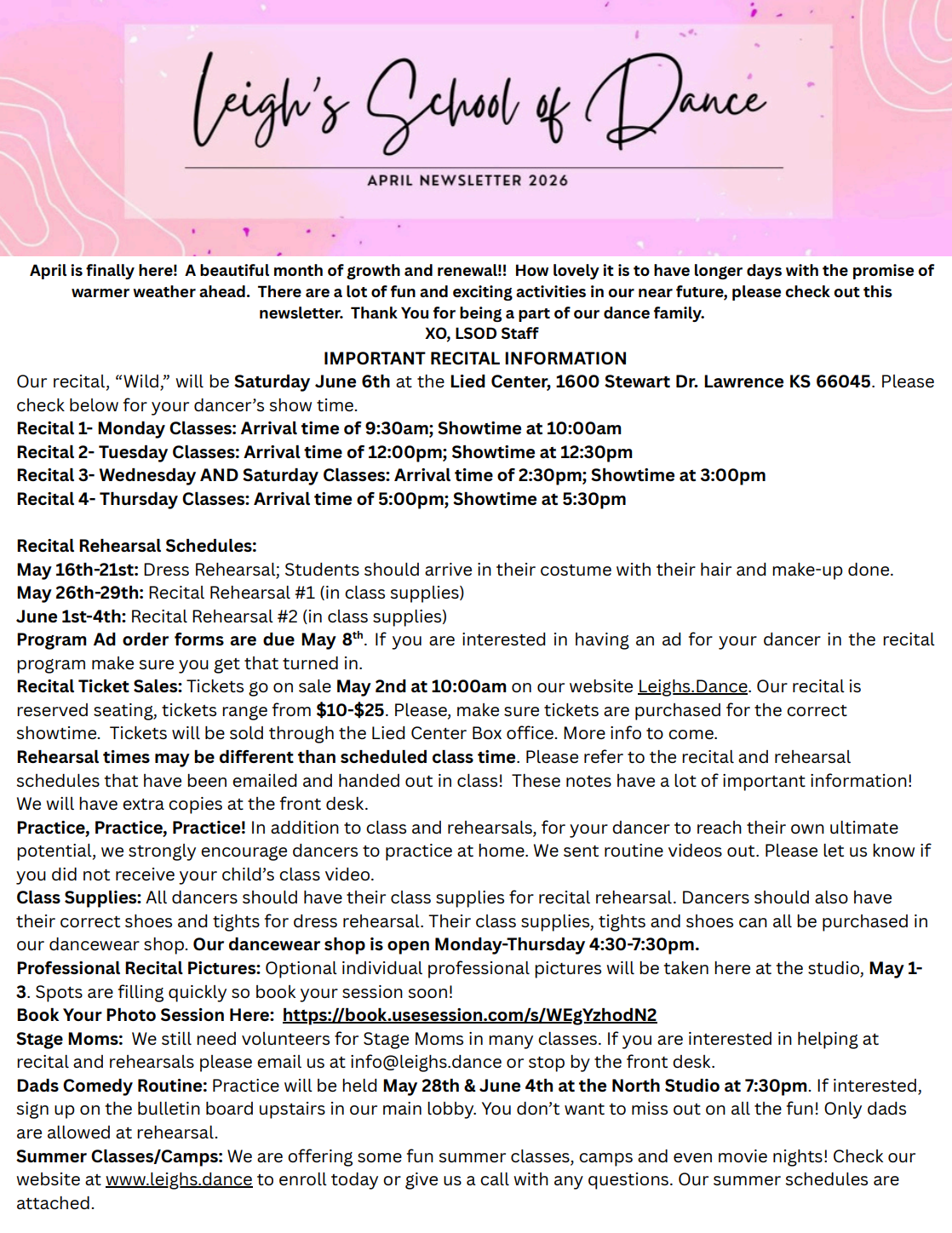 Sign Up for Recital PhotosJune: